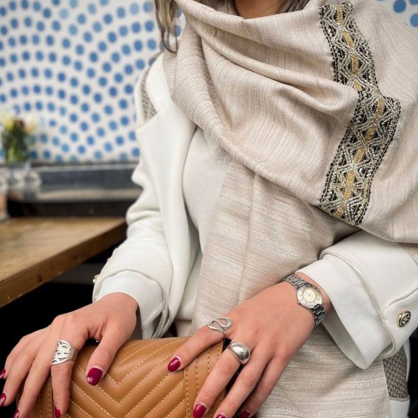استایل مینیمال : این شال در رنگ های سفید ، خاکستری با یک مانتوی فیت و بدون طرح با شلوار جذب یا دامن بلند ساده ست نمایید. این استایل برای افرادی که سبک ساده وشیک را می پسندند.