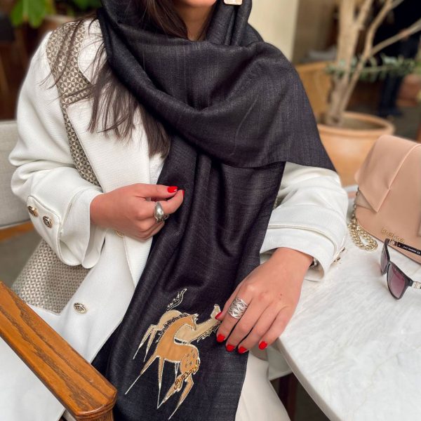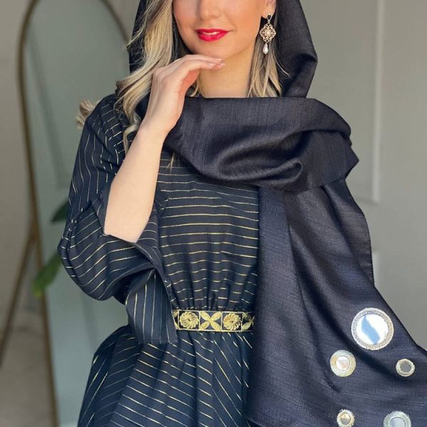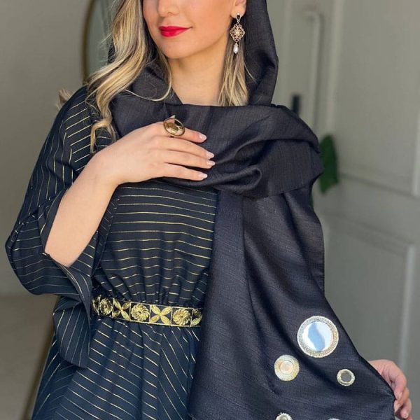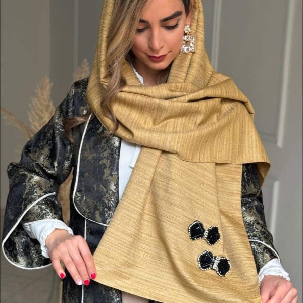 استایل رسمی : شال تافته در رنگ های طلایی ، نقره ای ، مشکی با یک مانتو مجلسی یا کت زنانه با ترکیب کفش پاشنه دار یک استایل کلاسیک و رسمی برای مهمانی و مراسم ها می باشد.