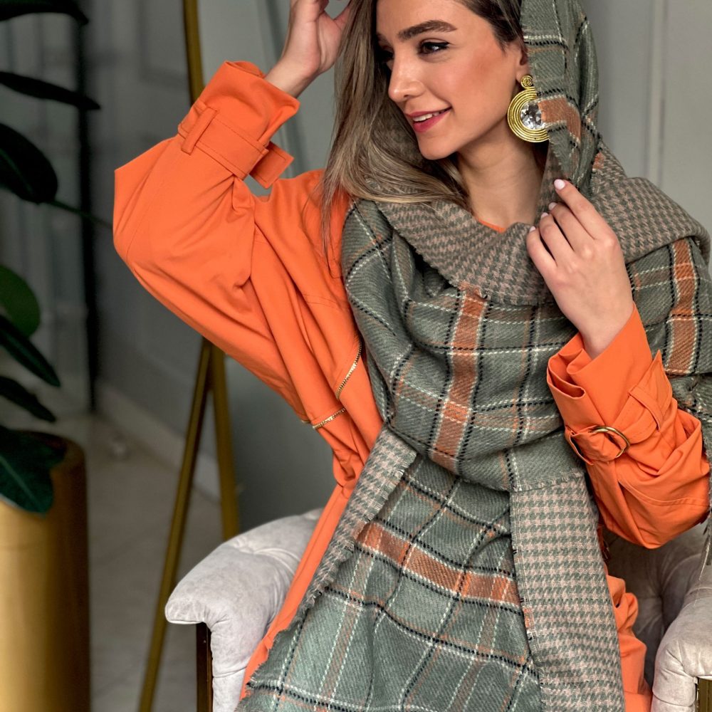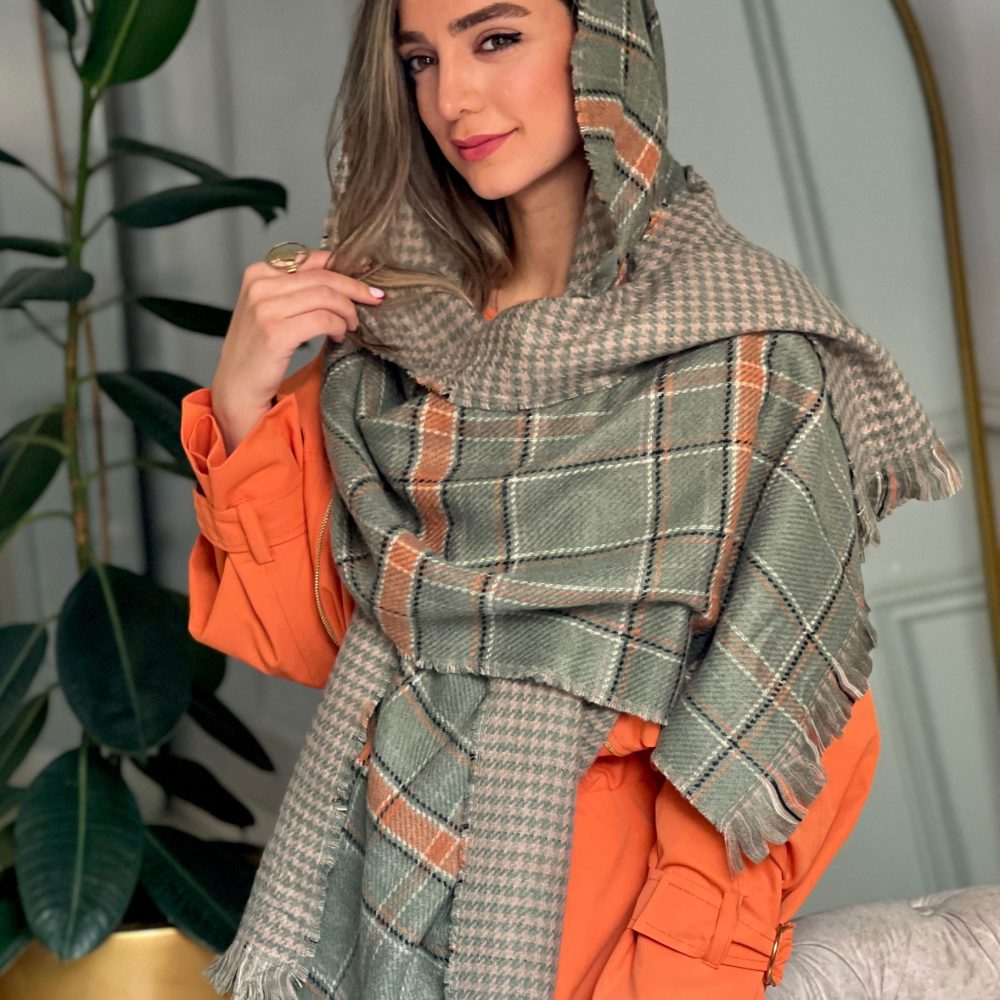 شال بریتان سبز با اکسسوری پروانه