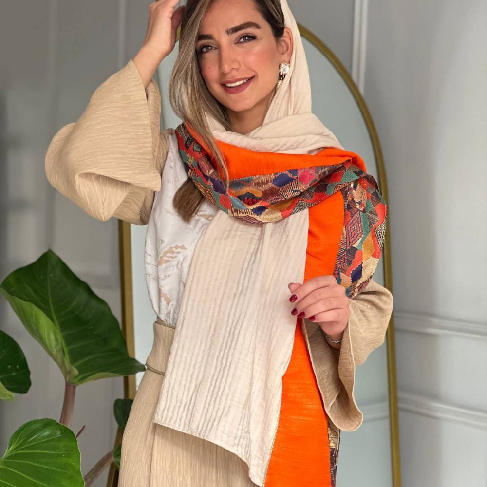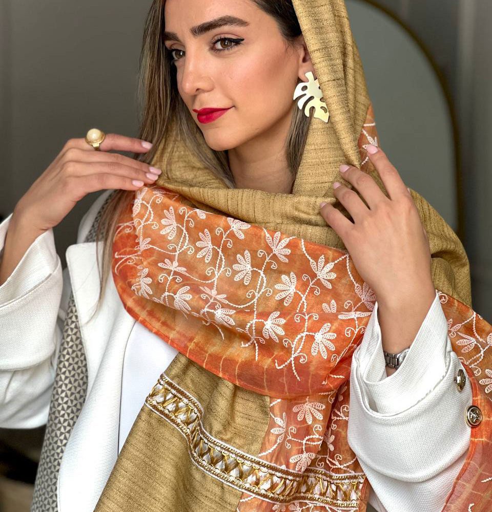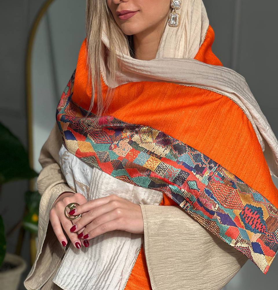 شال وارداتی پاییزه – زمستانی همراه با پولک دوزی و اکسسوری زیبای اسلیمی