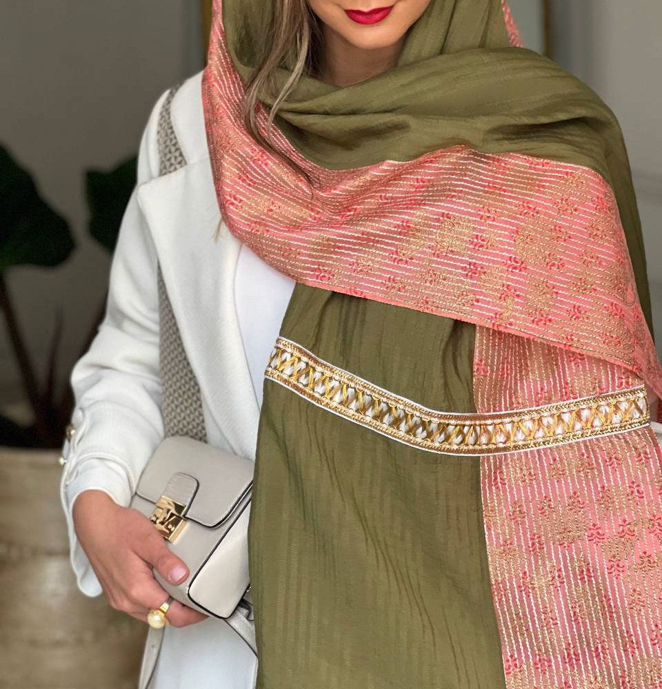 شال وارداتی پاییزه – زمستانی همراه با پولک دوزی و اکسسوری زیبای اسلیمی