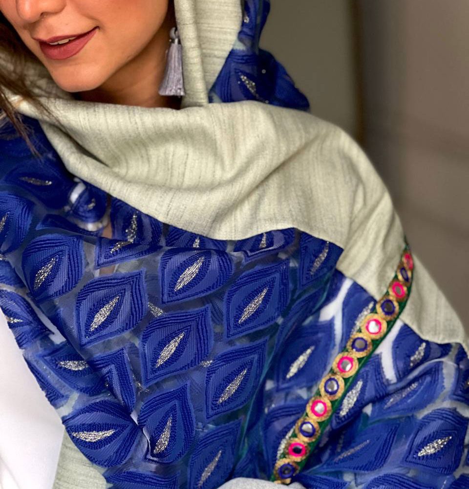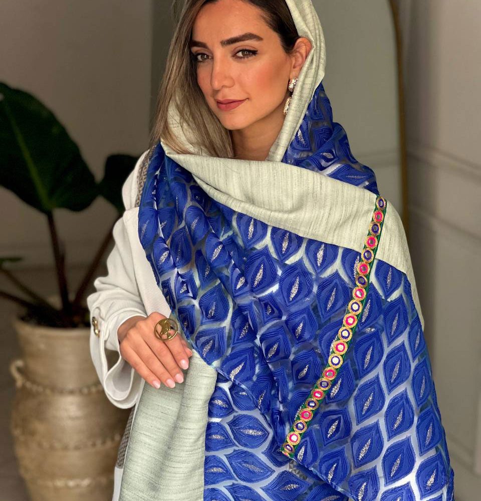 شال وارداتی پاییزه – زمستانی همراه با پولک دوزی و اکسسوری زیبای اسلیمی