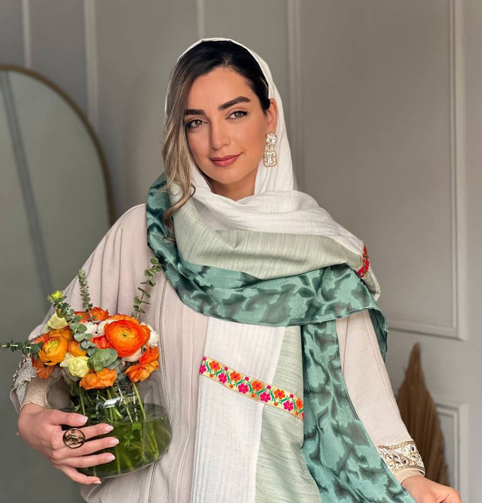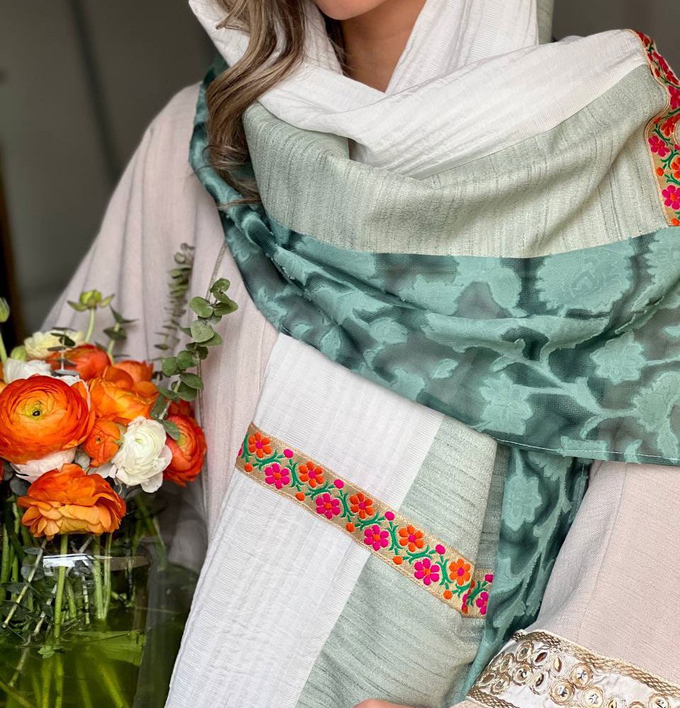 شال پرشنگ سبز ارتشی با اکسسوری اسلیمی