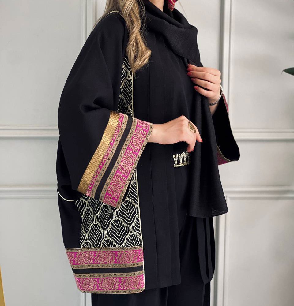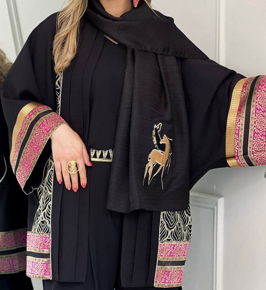 جنس : پارچه جودون ژاپن همراه با تركيبي از خرجكارهاي برجسته و سرمه دوزي شده بسيار مرغوب و نواردوزي های هندی