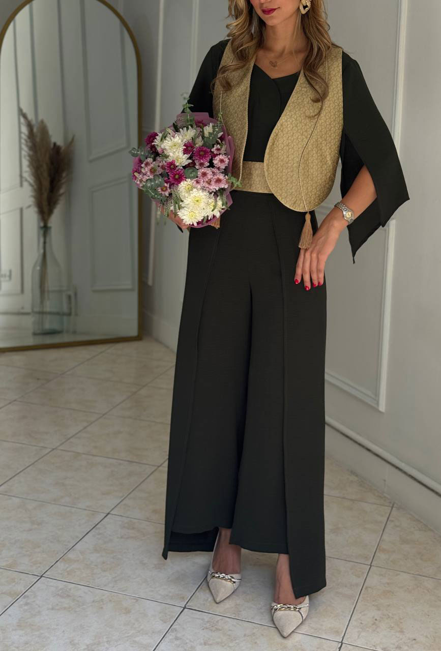 جلیقه با مغزی طلایی و ریش طلایی دیزاین شده