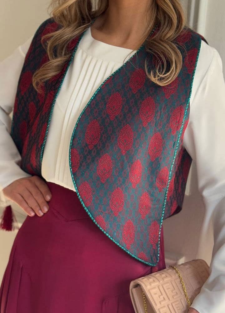 جلیقه با مغزی زرشكي و ریش زرشكي دیزاین شده