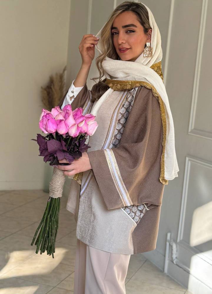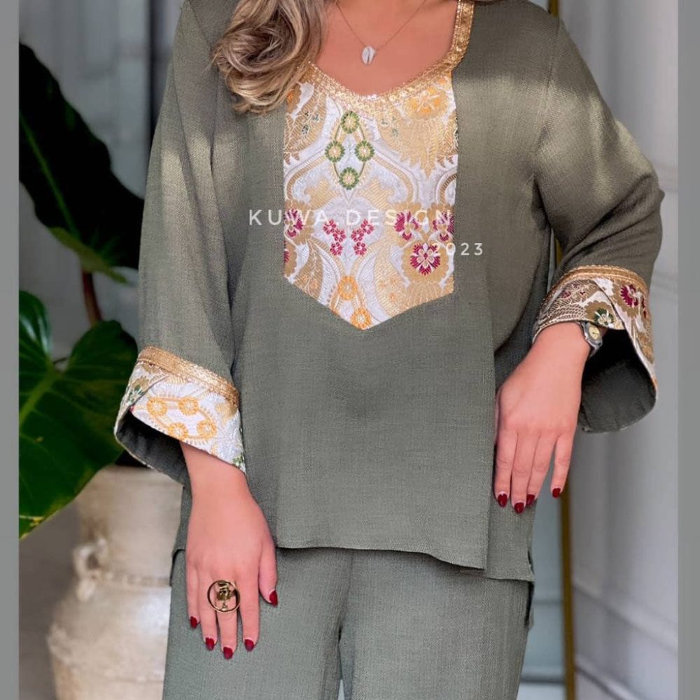 جنس : پارچه كتان لمه همراه با تركيبي از خرجكارهاي برجسته هندي و سرمه دوزي شده بسيار مرغوب و نواردوزي های هندی